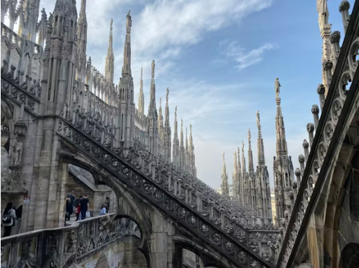하지만 야심찬 시작과 달리 공사는 순탄치 않았다. 재정 문제, 설계 변경, 시대적 유행의 변화가 반복되며 공정은 수없이 멈췄고, 건축가 역시 특정 인물 한 명이 아닌 다수의 장인과 설계자들이 바통을 이어받는 방식으로 진행되었다. 그 결과 밀라노 대성당은 하나의 일관된 스타일로 완성되지 못하고, 각 시대의 미감이 층층이 쌓인 독특한 외형을 갖게 된다. 프랑스 고딕 특유의 플라잉 버트레스와 화려한 앱스, 르네상스의 팔각형 쿠폴라, 바로크와 신고전주의 요소까지 공존하는 모습은 계획되지 않은 혼합이었지만, 역설적으로 이 성당을 어디에도 없는 건축으로 만들었다.